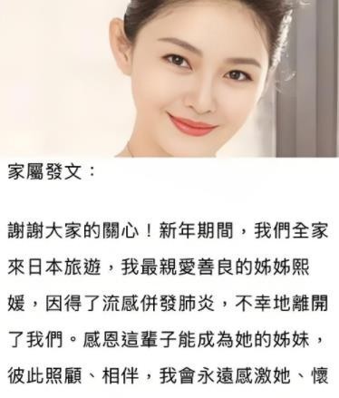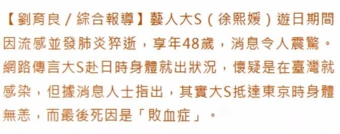第一种是家属的说法,称大S是因流感并发肺炎去世。